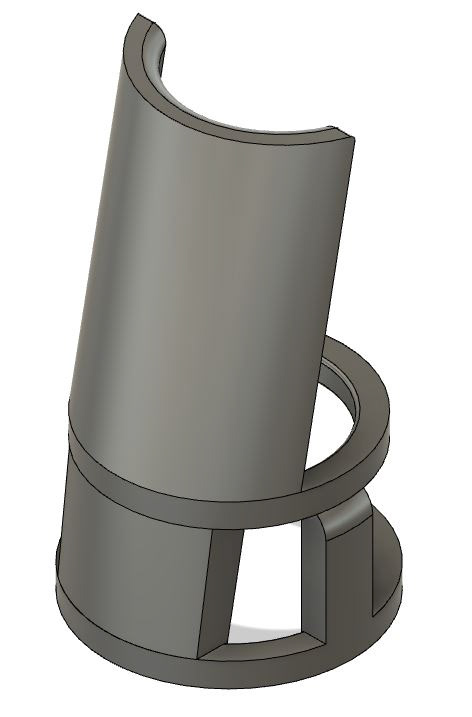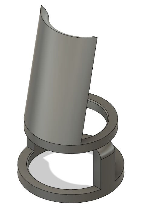 Based on the 3D model of the patient's finger, an initial prototype was drafted in Fusion 360. The design was composed of 2 parts. The first part, comprised of two rings connected by cross-bars. The rings acted as an anchor and fit onto the patient's middle phalange. The second part was a solid piece of material angled upwards to hold the distal phalange in an extended position. The angle was decided upon after consultation with the physiotherapist. A prototype was produced using an Anycubic Photon SLA 3D printer.